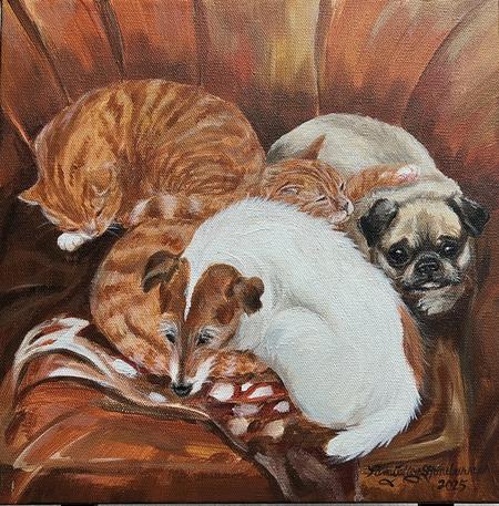 Petie, Waffles & Kitty Friends (Acrylic 12 in. x 12 in.)